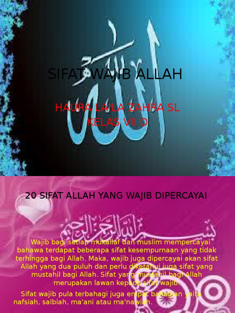 Sifat wajib pada allah adalah sifat yang sudah pasti ada pada allah.